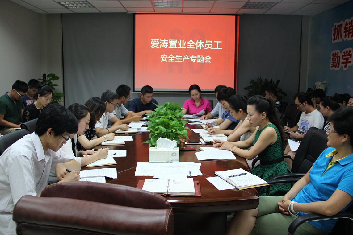 8月27日下午,愛濤置業(yè)公司安全檢查小組召開關(guān)于進一步加強安全生產(chǎn)工作的專題會。會議認真?zhèn)鬟_學習了控股集團、建設集團下發(fā)的關(guān)于進一步加強安全生產(chǎn)工作的通知要求,并簽署了安全生產(chǎn)管理責任承諾書和安全生產(chǎn)個人責任承諾書。愛濤置業(yè)公司總經(jīng)理及安全生產(chǎn)檢查小組各成員分別就分管區(qū)域擬定了近期計劃和工作部署,會議針對安全生產(chǎn)、安全檢查、安全責任等,要求從總經(jīng)理到各項目、各部門、各專業(yè)板塊以及各具體執(zhí)行人員,形成逐級落實、層層負責的體系,以“零容忍”的態(tài)度,讓安全生產(chǎn)意識扎根每位員工心中,真正形成長效機制,通過自檢、互檢、限期整改等多種方式,堅決防范和遏制安全事故。