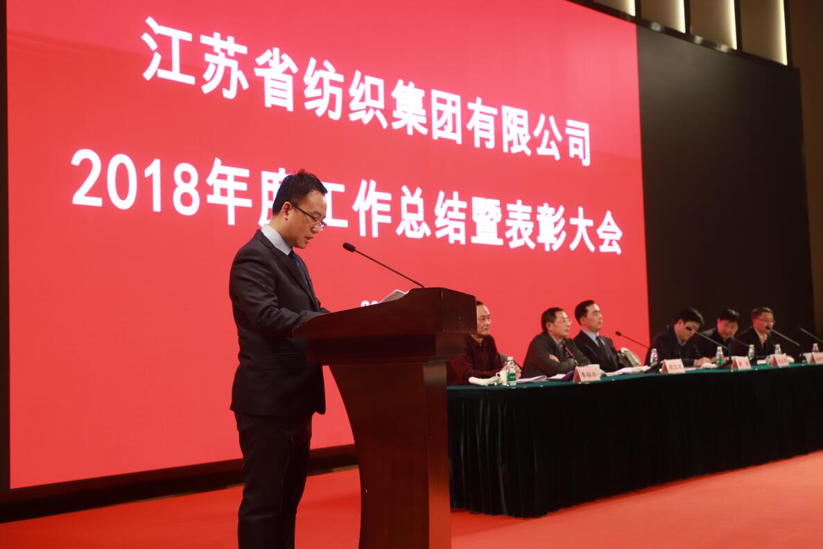 1月30日下午,江蘇省紡織集團有限公司召開2018年工作總結暨表彰大會??毓杉瘓F副總裁周謙同志到會祝賀,紡織集團領導班子成員、控股集團紀委派駐綜合紀檢組成員、紡織集團本部人員、各子公司班子成員及部門正副職人員等120余人參加會議。
